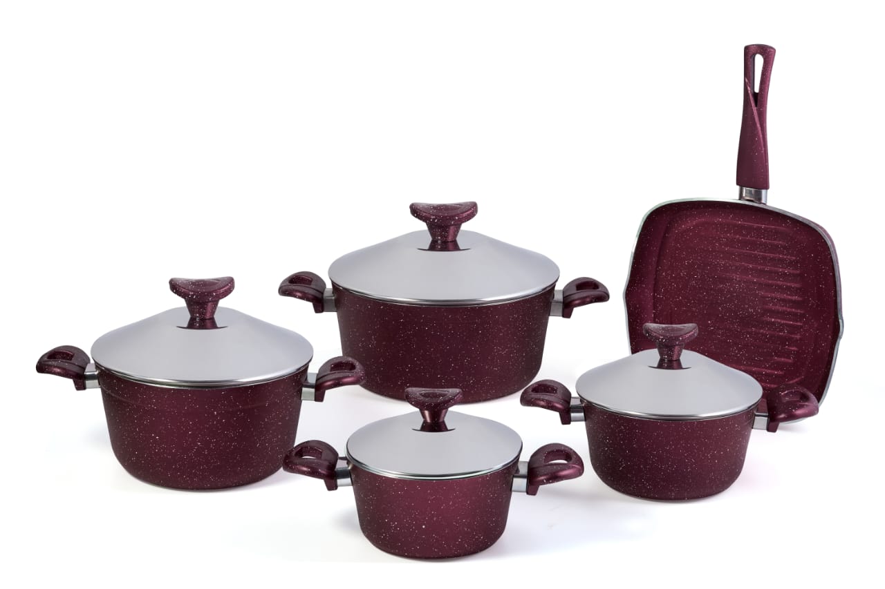 🍳✨ مجموعة طقم تيتانيوم فيلار 11 قطعه (4 حله ، 2 ماسك جريل)